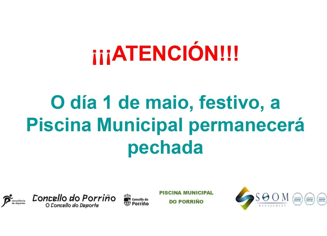 O venres 1 de maio a piscina municipal permanecerá pechada.